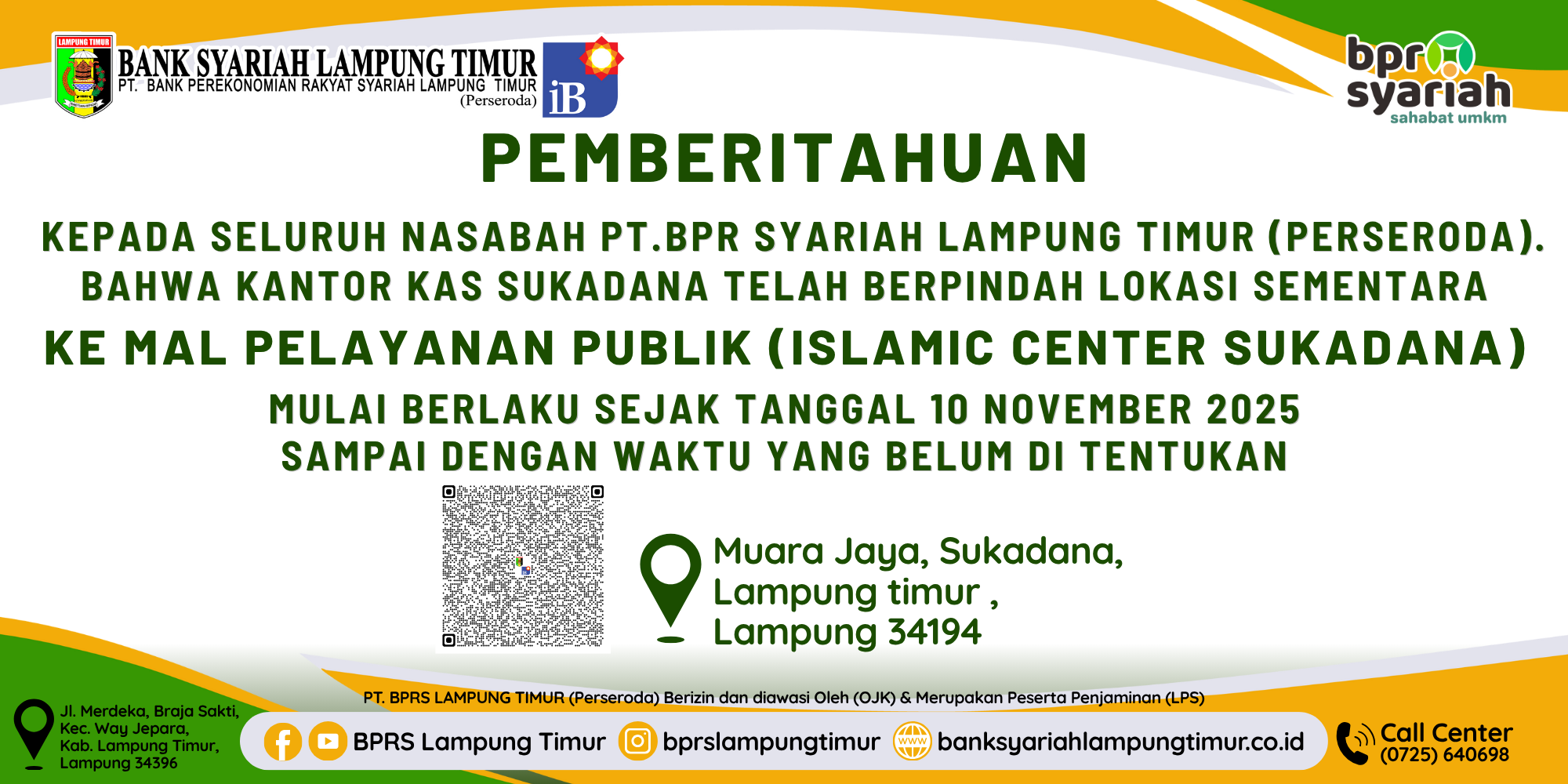 Diberitahukan Kepada Nasabah BPR Syariah Lampung Timur (Perseroda)